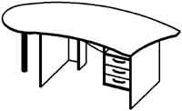 Стіл офісний керівника підрозділу. Має збільшену площу стільниці і стандартну підвісну тумбу з трьома ящиками і нішею над нею. За бажанням замовника виконується з лівим чи правим (див. малюнок нижче) розташуванням тумби. Додатково може комплектуватися полицею для клавіатури і візком для системного блоку ТСБ.