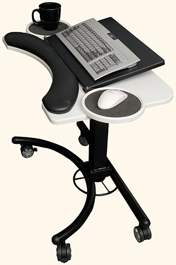 Модерний столик для ноутбука - є модифікацією столу моделі СН10: комбінація мобільності офісного крісла та робочої поверхні журнального столика. Не дивлячись на свою незвичайність, столик зарекомендував себе як дуже зручний гаджет для виставкових залів, презентацій та інших тимчасових робочих приміщень.